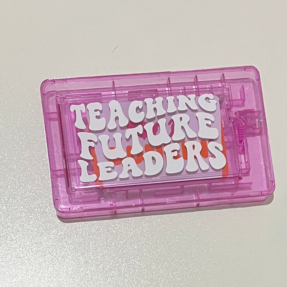 - Made of plastic. Approximately 5.5 x 3.4 x .6 inches.